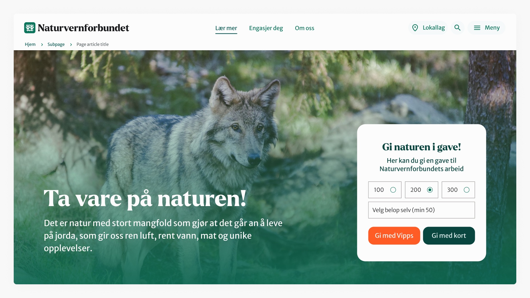 Et viktig verktøy for å optimalisere konvertering var å forbedre UX og design. Dekode revitaliserte den eksisterende visuelle identiteten med utgangspunkt i Naturvernforbundets strategi og verdier. I designfasen jobbet vi tett med prosjektgruppen og inviterte dem inn i designerens skisseverktøy, Figma. Kjernefunksjonalitet ble testet internt med klikkbare prototyper. Designer er også ansvarlig for at kontraktsverdi og visuelt design er i tråd med gjeldende WCAG standard.